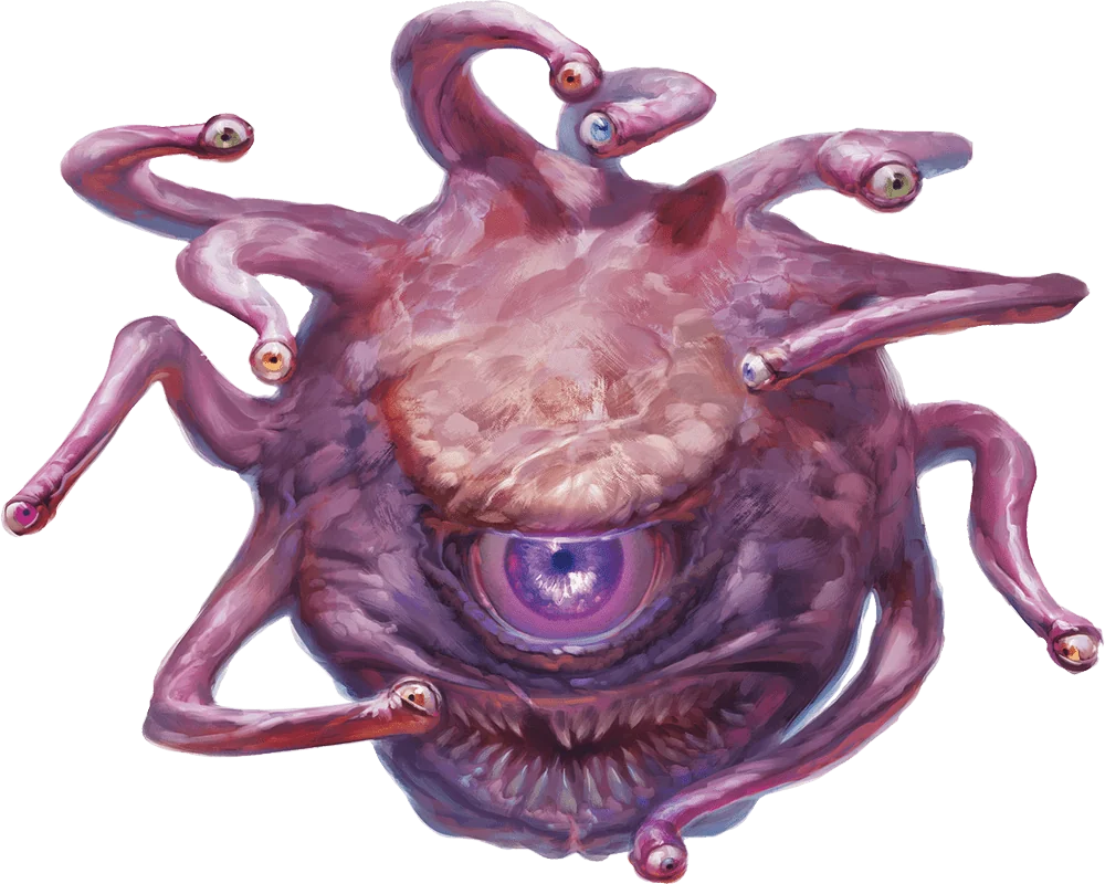 One glance at a beholder is enough to assess its foul and otherworldly nature. Aggressive, hateful, and greedy, these aberrations dismiss all other creatures as lesser beings, toying with them or destroying them as they choose.