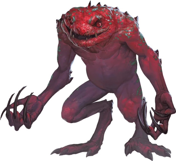 - **Languages** Slaad, telepathy 60 ft.