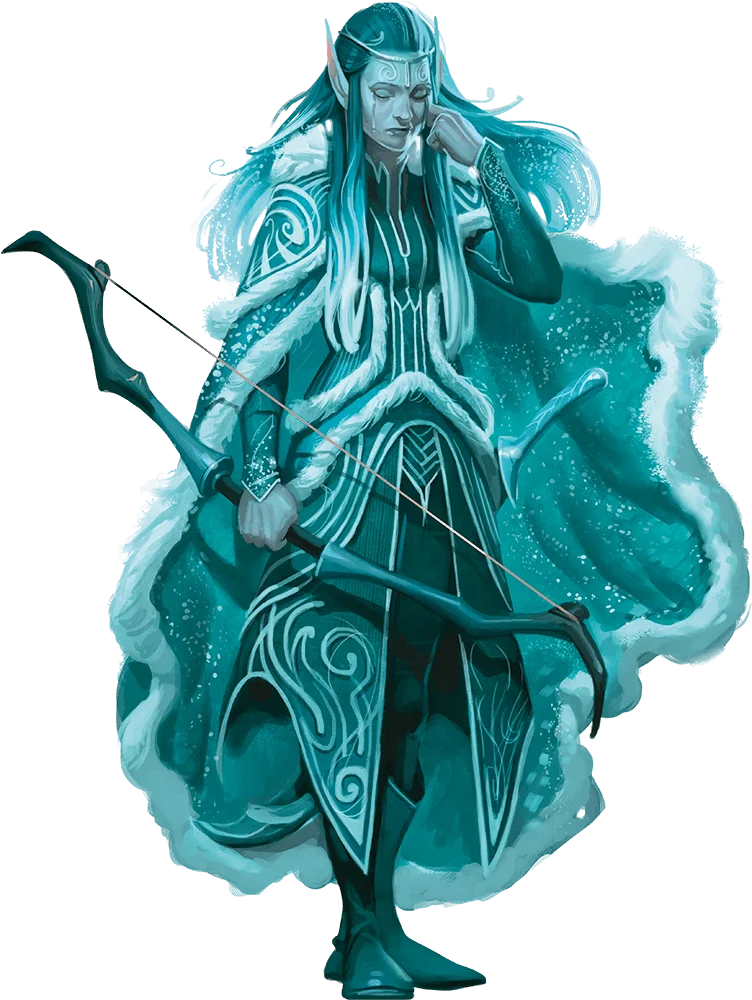 When sorrow distresses eladrin, they enter the winter season, becoming figures of melancholy. Frozen tears drop from their cheeks, and their palpable sadness emanates from them as icy cold.