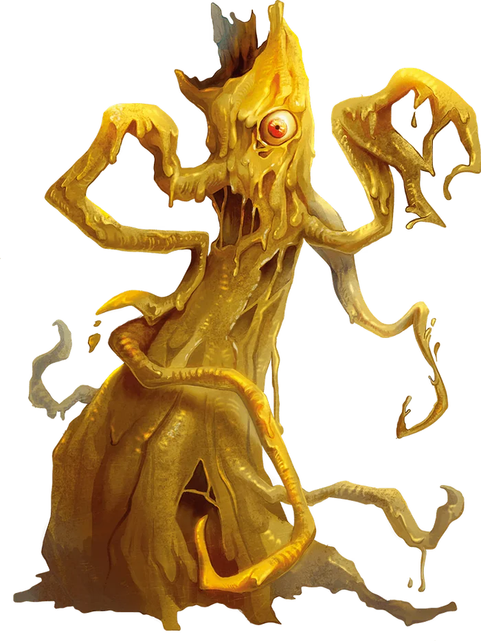 Outside the Abyss, a yochlol can assume the guise of a female drow or monstrous spider to conceal its demonic form. In its true form, the fiend appears as a pillar of yellow slime with a single malevolent eye. In its drow and true form, a yochlol’s touch carries the same venomous touch as its spider form’s bite.