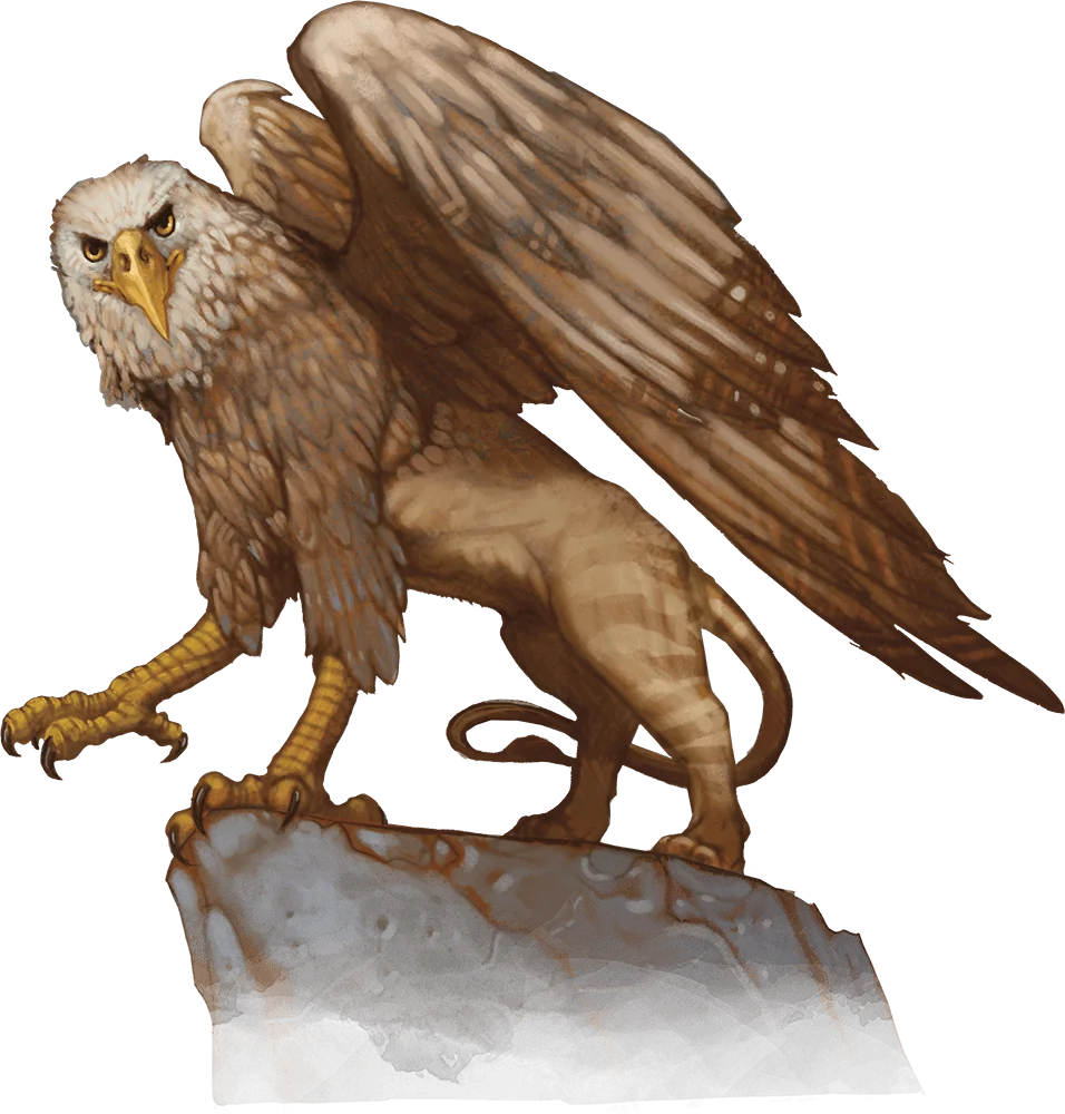 Griffons are ferocious avian carnivores with the muscular bodies of lions and the head, forelegs, and wings of eagles. When they attack, griffons are as swift and deadly as eagles, even as they strike with a lion’s savage might and grace.