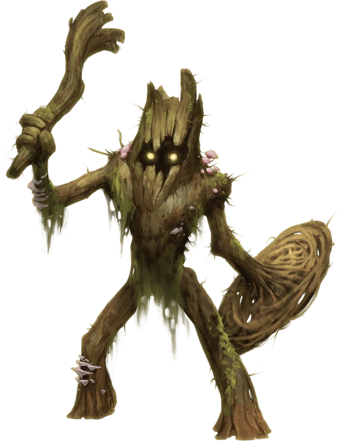 Wood woads are drawn to creatures that have close ties to nature and that protect and respect the land, such as druids and treants. Some treants have wood woad servants by virtue of age-old pacts with druids or Fey that performed the rituals, while others acquire the services of freed wood woads that find renewed purpose in serving a kindred guardian.