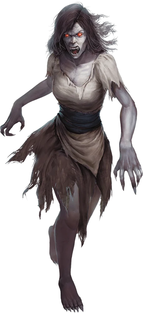 Most of a vampire’s victims become vampire spawn-ravenous creatures with a vampire’s hunger for blood, but under the control of the vampire that created them. If a true vampire allows a spawn to draw blood from its own body, the spawn transforms into a true vampire no longer under its master’s control. Few vampires are willing to relinquish their control in this manner. Vampire spawn become free-willed when their creator dies.