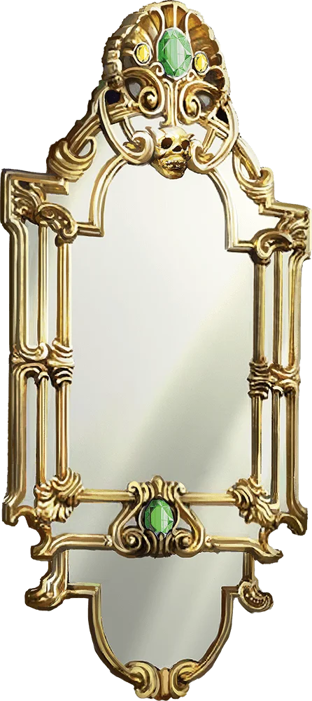When this 4-foot-tall mirror is viewed indirectly, its surface shows faint images of creatures. The mirror weighs 50 pounds, and it has AC 11, 10 hit points, and vulnerability to bludgeoning damage. It shatters and is destroyed when reduced to 0 hit points.