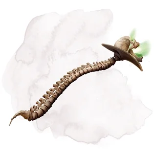 Made from bones as hard as iron, the wand is topped with a magically enlarged skull that once belonged to a human hero slain by Orcus. The wand can magically change in size to better conform to the grip of its user. Plants wither, drinks spoil, flesh rots, and vermin thrive in the wand’s presence.