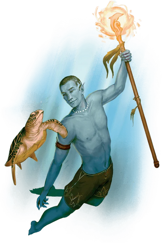 Aquatic animals have an extraordinary affinity with your people. You can communicate simple ideas to any Beast that has a swimming speed. It can understand your words, though you have no special ability to understand it in return.