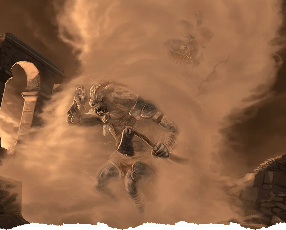 A whirlwind howls down to a point that you can see on the ground within range. The whirlwind is a 10-foot-radius, 30-foot-high cylinder centered on that point. Until the spell ends, you can use your action to move the whirlwind up to 30 feet in any direction along the ground. The whirlwind sucks up any Medium or smaller objects that aren’t secured to anything and that aren’t worn or carried by anyone.